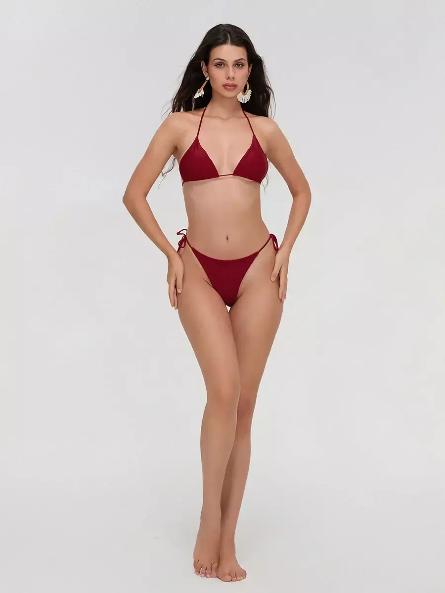 Conjunto de biquíni feminino 2 peças, sutiã de alças halter acolchoado sem fio de cor sólida, calcinha triangular de cintura alta, conjunto de natação de verão